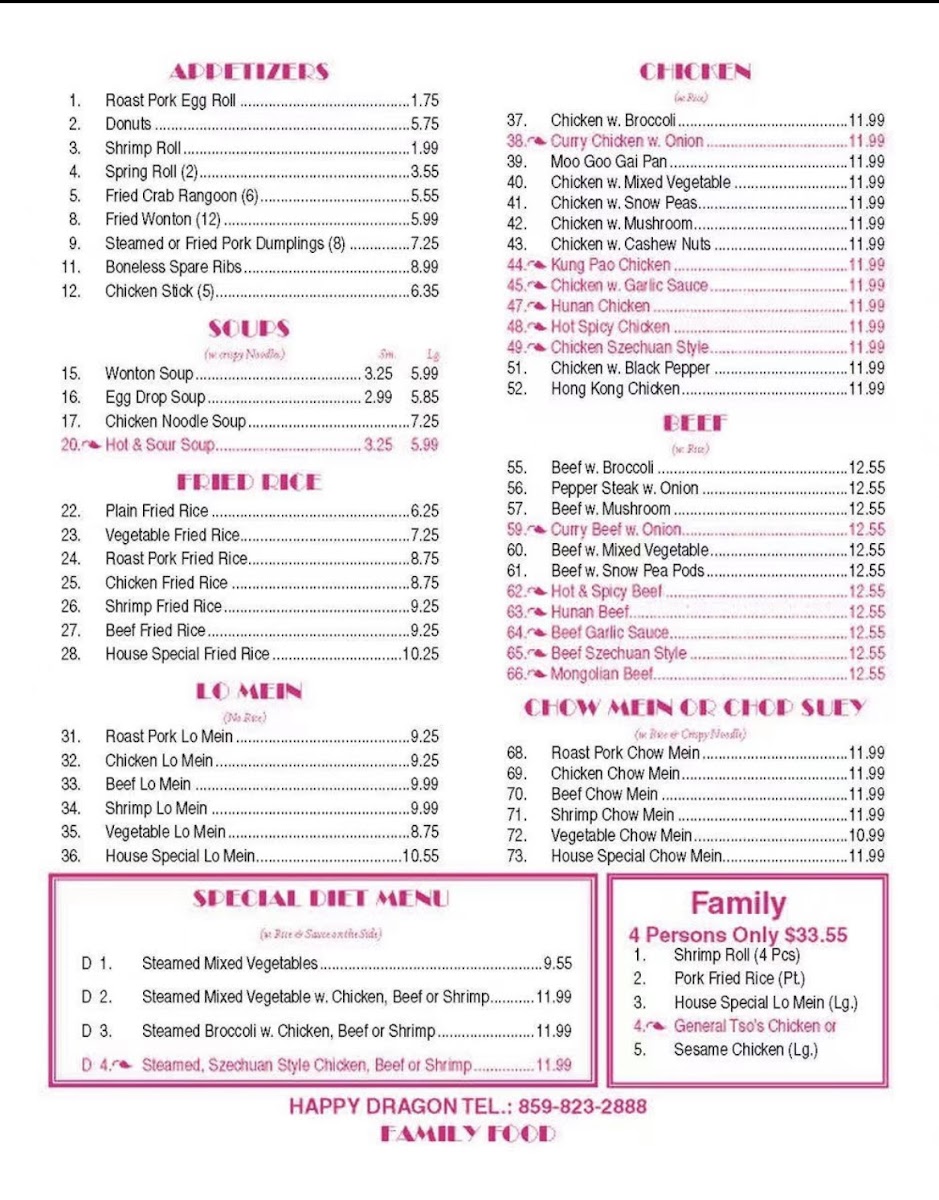 The menu at Happy Dragon offers a comforting and approachable selection of classic Chinese dishes, perfect for casual meals that satisfy everyday cravings. Whether you're stopping by for a quick lunch or settling in for a relaxed dinner, you'll find options that feel familiar yet thoughtfully prepared.